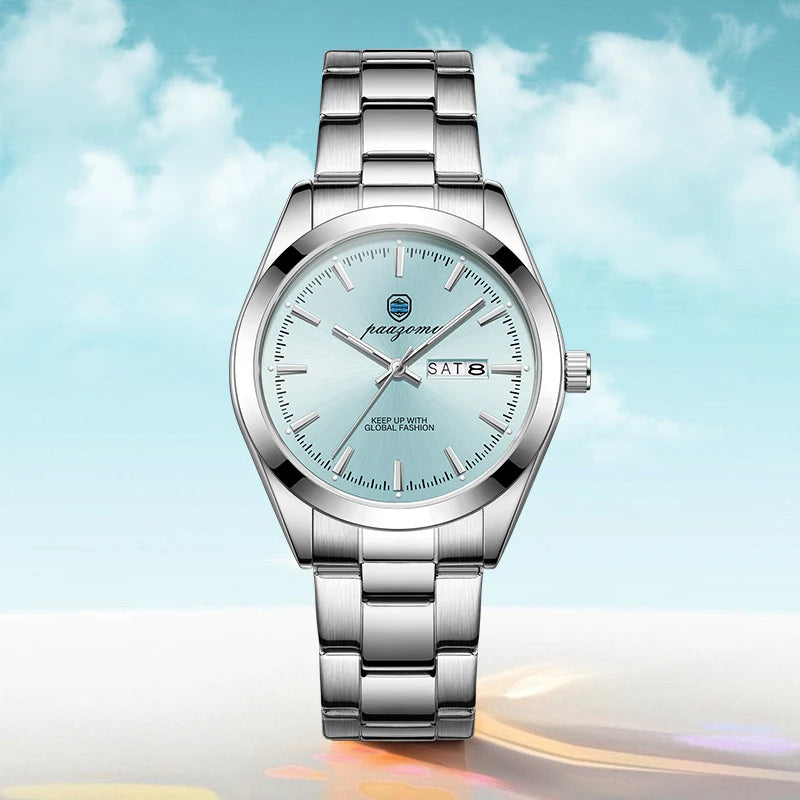 PAAZOMU Round Luxury Men Wristwatch Waterproof Luminous Date Stainless Steel Male Clock Business Sports Quartz Watches For Men